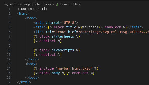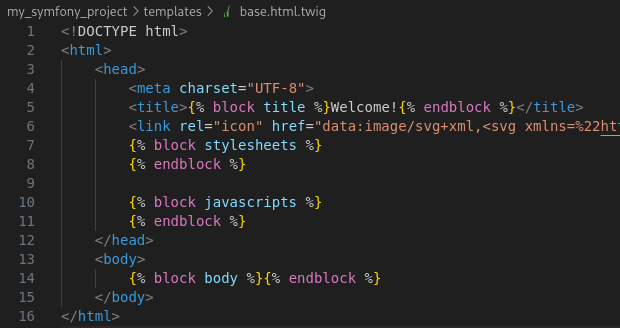{% ... %} # syntaxe pour les blocs Twig.{{ ... }} # syntaxe pour afficher des variables.