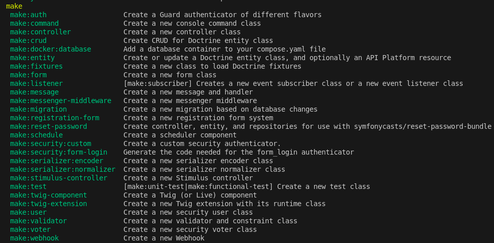 composer require symfony/maker-bundle --dev